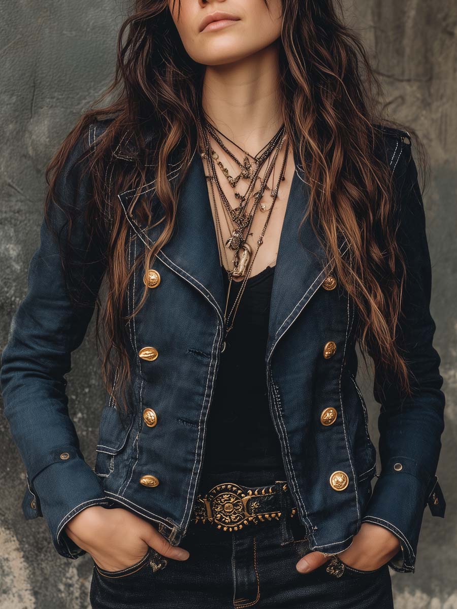 Product Description: Embrace a timeless style with the Retro Double-breasted Denim Jacket. This classic piece combines vintage charm with modern elegance, offering a versatile addition to your wardrobe.