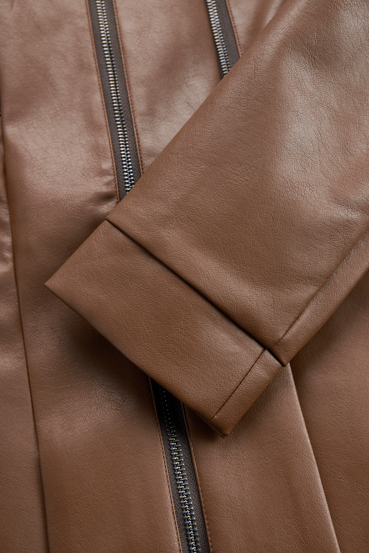 The vintage faux leather and stand collar design create a unique blend of classic craftsmanship and contemporary fashion.