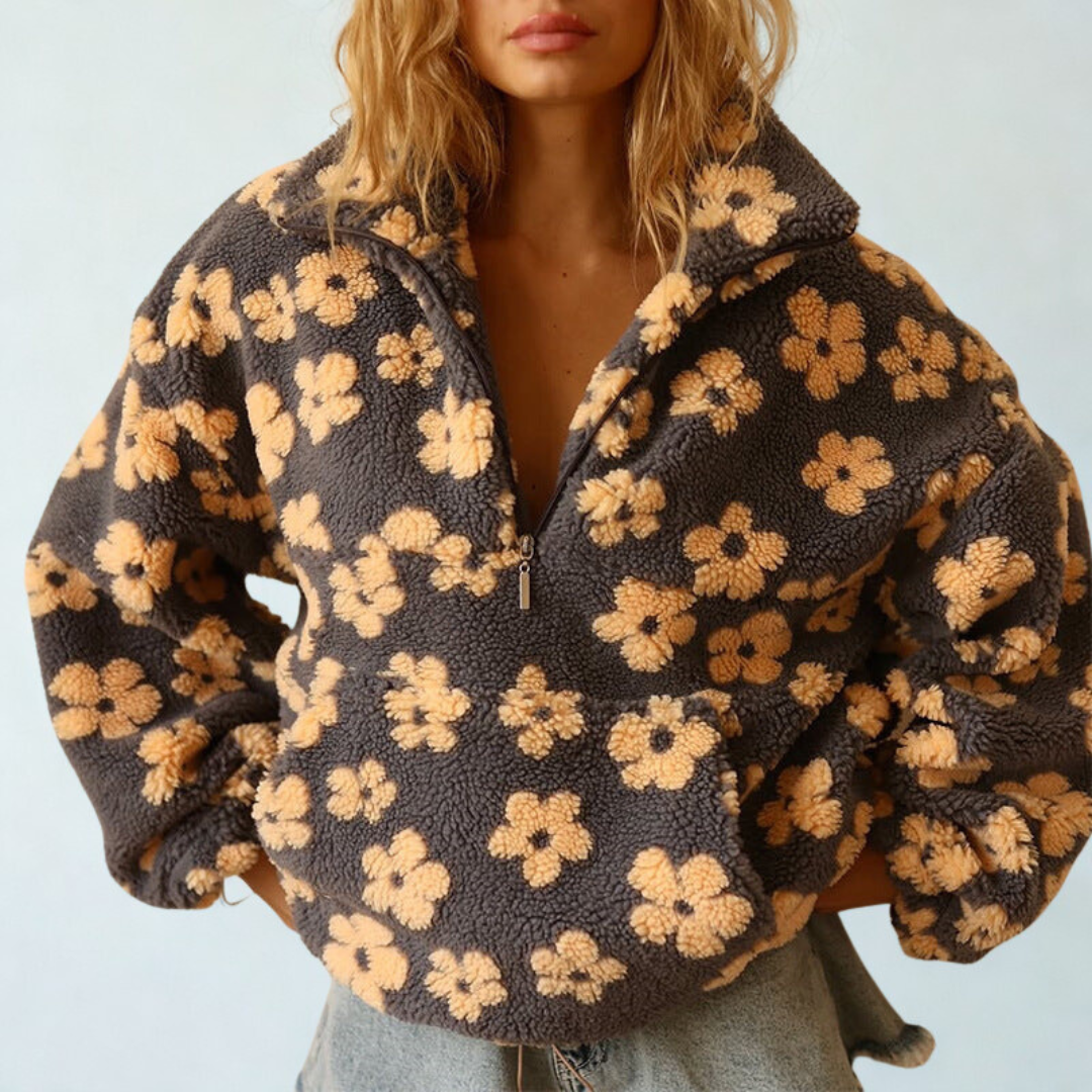 The Fleece Hoodie is crafted from plush sherpa fleece, wrapping you in warmth while adding a touch of playful floral style. Perfect for fall strolls, coffee runs, or cozy evenings at home, it’s your new go-to for comfort and charm.