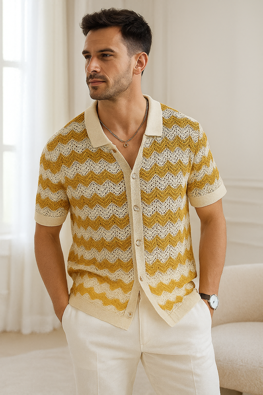 Crafted with breathable open-knit fabric and a retro zigzag pattern, The Sunset Zig brings timeless flair to modern wardrobes. Its soft, lightweight texture keeps you cool while delivering statement-level style from brunch to boardwalk. Every detail is designed to elevate your confidence because when you wear Sunset Zig, all eyes follow.